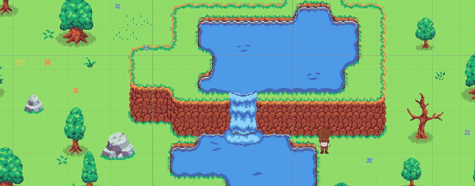 This week I finished up my tile map, and added various checkpoints around allowing for the player to save their position in the world without having to restart from the beginning. Finishing the tile map, was an easy but time consuming task as I wanted it to still feel random but also still nice looking. I also added in some animated tiles for a waterfall / in the river using the tutorials from class to help me.